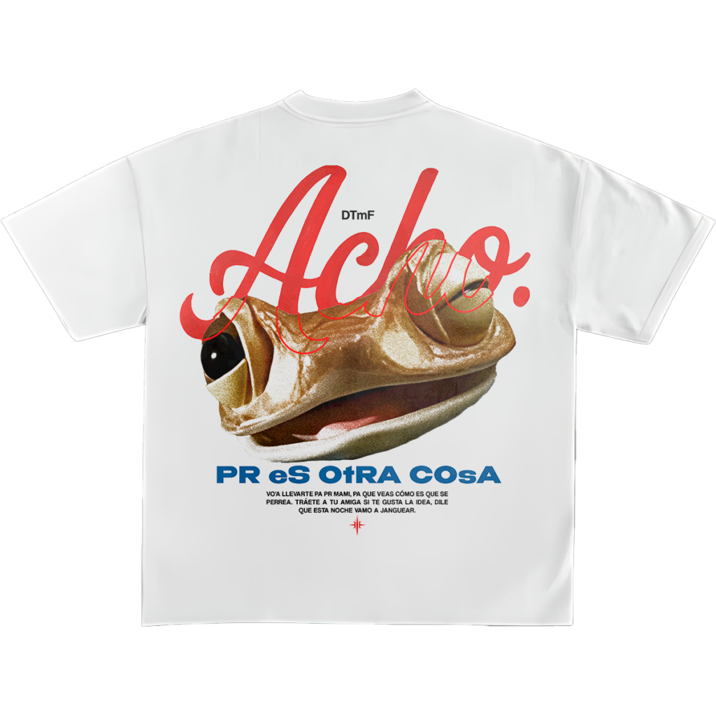 Una declaraci—n de orgullo boricua en su maxima expresi—n. Esta camiseta homenajea el ritmo, el lenguaje y la esencia de Puerto Rico con la palabra Acho en grande, sobre la imagen realista de un coqu’ Ñs’mbolo nacional acompañada de la frase contundente: PR es otra cosa. Perfecta para los que saben que janguear en la isla es un arte.