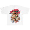 Camiseta blanca corte boxy, elaborada en algodón 100% de 260 GSM con cuello redondo doble capa rib, costuras reforzadas y caída firme. Diseño frontal en impresión DTF de alta fidelidad.