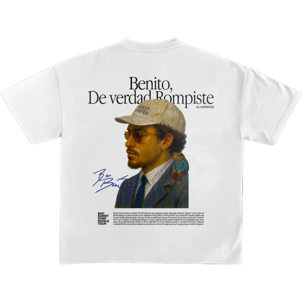 Playera blanca semi oversize de 250 GSM, confeccionada en algodón de alta calidad, con cuello rib grueso para una estructura firme y cómoda. Pensada para los que entienden el peso de hacer historia