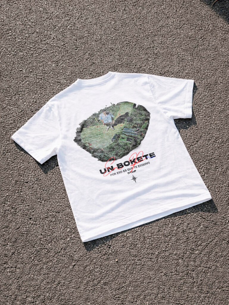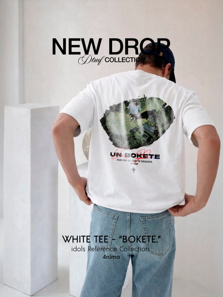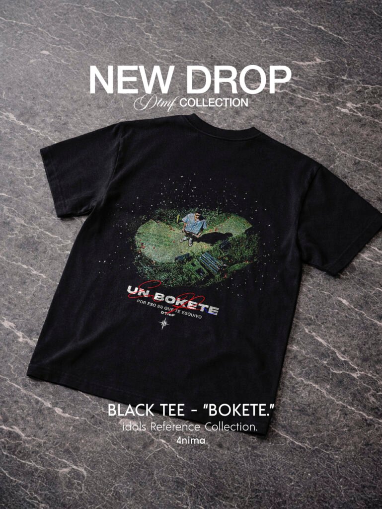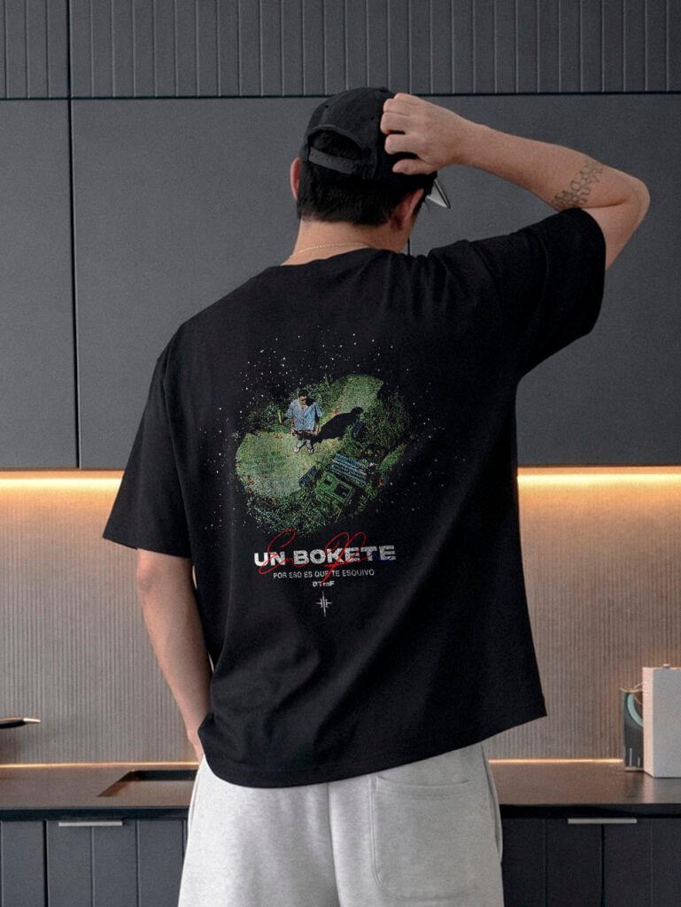 Un Bokete Tee – DTmF Edition Camiseta oversized en algodn 100% de 260_GSM, cuello redondo con refuerzo y estampado trasero en DTF de alta resolución con acabado suave y duradero.