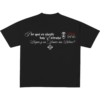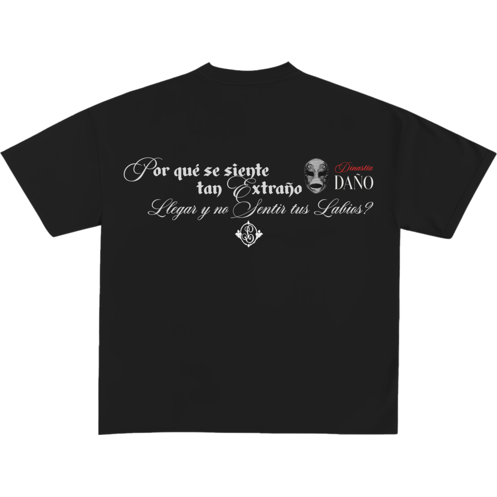Camiseta negra oversized en algodón premium. Estampado DTF limpio y legible con composición tipográfica inspirada en la narrativa de Dinastía Deluxe: amor roto, silencio y presencia.