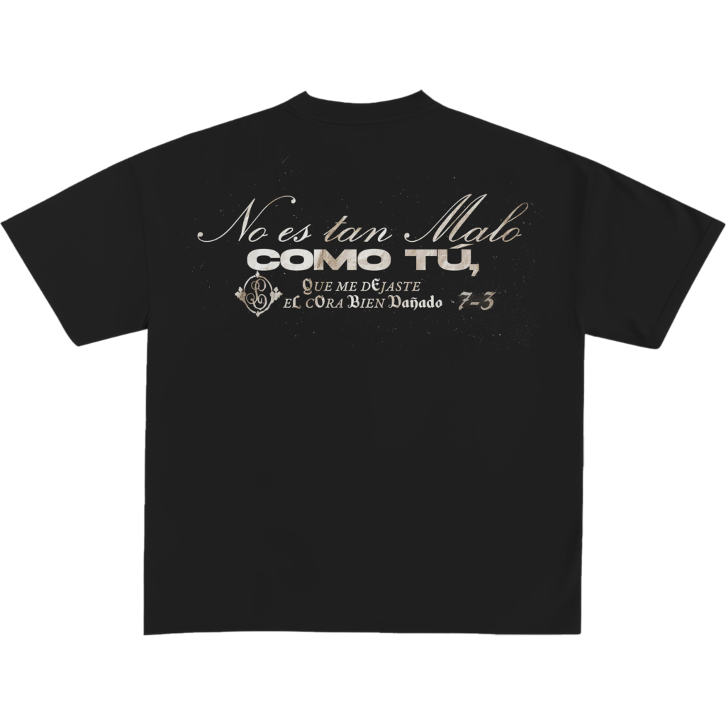Camiseta negro oversized en algodón premium. Estampado DTF frontal pequeño (pecho) con crest de la colección. Minimal, premium y fácil de usar.