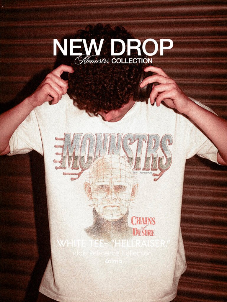 Oscura, provocadora y cargada de culto. Esta pieza rinde tributo a uno de los íconos más perturbadores del cine de horror: Pinhead, el amo de los cenobitas. El diseño central muestra un retrato detallado del personaje, con su icónica cuadrícula de clavos y una mirada que hiela la sangre.
