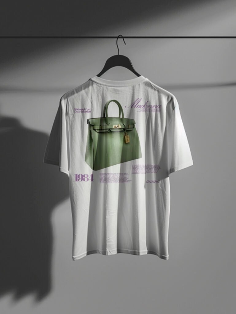 La playera Madonna de Natanael Cano está diseñada con la más alta calidad y atención al detalle. Está confeccionada con algodón suave y cómodo, lo que la hace perfecta para uso diario. El diseño de la playera presenta una impresión de alta resolución de la icónica bolsa Birkin de Hermes, que se destaca por su elegancia y estilo.