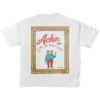 Camiseta blanca estilo oversize, fabricada en algodón 100% de 260 GSM, con cuello redondo de doble costura y estampado DTF de alta definición al reverso.