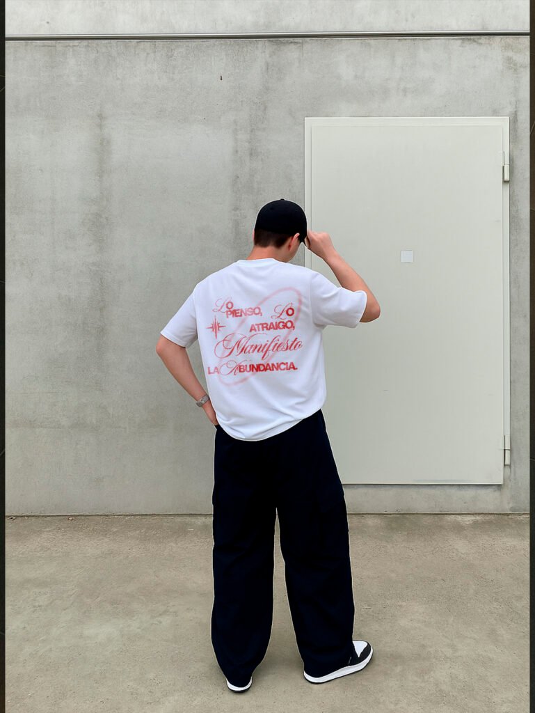 Base blanca, silueta oversized y estilo urbano.