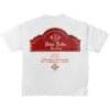 Camiseta blanca oversized en algodón premium 260 GSM. Estampado DTF en rojo vintage con tipografía clásica estilo placa tradicional.